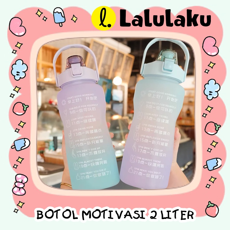 BESAR JUMBO GRATIS Stiker BOTOL VIRAL KOREA 2 LITER Minum Motivasi 2000ml 2L Waktu Tumbler Air Sekolah Kerja Trend Laris Karakter Sedotan